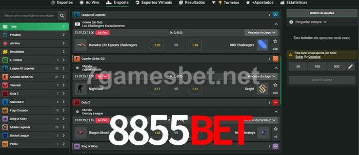O 8855Bet oferece uma grande seleção de opções de apostas em e-sports com probabilidades competitivas